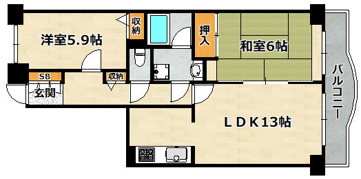 洋室 5.9畳 LDK 13畳 |