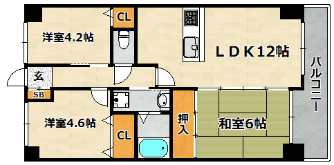 | 間取り詳細 | LDK 12畳 、 和室 6畳 、 洋室 4.6畳 、 洋室 4.2畳 |