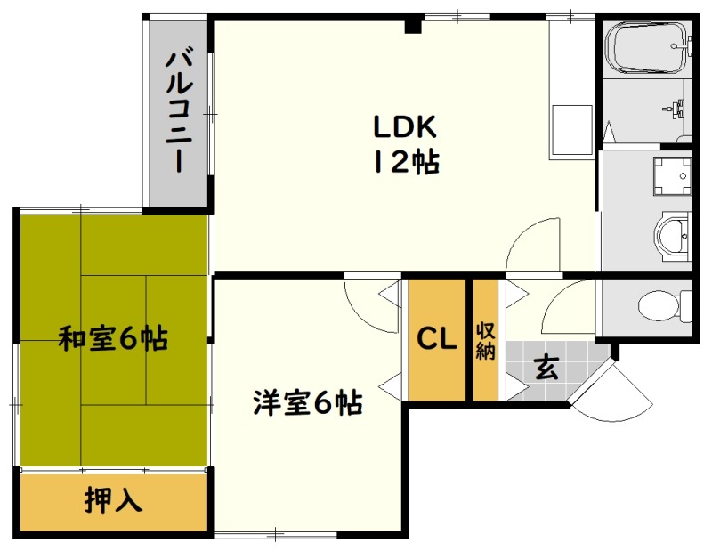 | 間取り詳細 | 洋室 6畳 、 和室 6畳 、 LDK 12畳 |