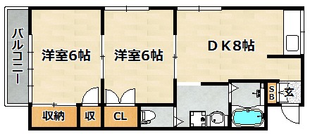 | 間取り詳細 | LDK 8畳 、 洋室 6畳 、 洋室 6畳 |