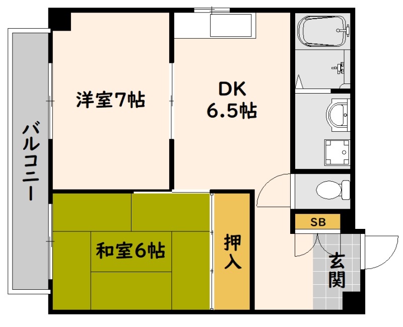 | 間取り詳細 | DK 6.5畳 、 洋室 7畳 、 和室 6畳 |