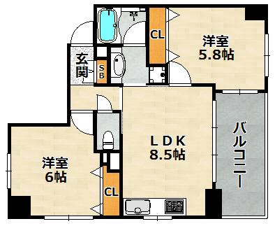 | 間取り詳細 | LDK 8.5畳 、 洋室 5.8畳 、 洋室 6畳 |