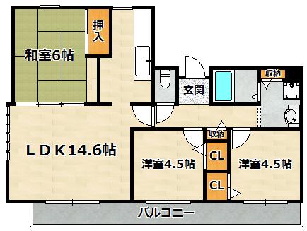 | 間取り詳細 | LDK 14.6畳 、 洋室 4.5畳 、 洋室 4.5畳 、 和室 6畳 |
