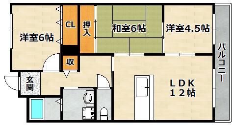 洋室 4.5畳 洋室 6畳 和室 6畳 |