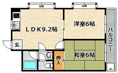 | 間取り詳細 | LDK 9.2畳 、 和室 6畳 、 洋室 6畳 |