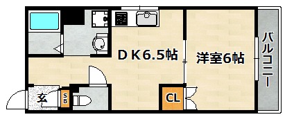 | 間取り詳細 | 洋室 6畳 、 DK 6.5畳 |