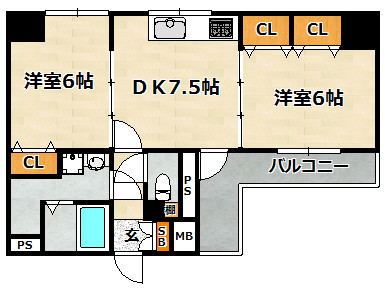 | 間取り詳細 | 洋室 6畳 、 洋室 6畳 、 LDK 7.5畳 |