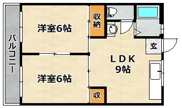 | 間取り詳細 | LDK 9畳 、 洋室 6畳 、 洋室 6畳 |