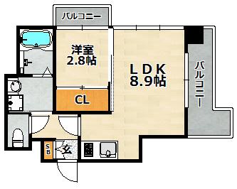| 間取り詳細 | LDK 8.9畳 、 洋室 2.8畳 |