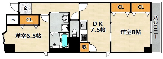 | 間取り詳細 | DK 7.5畳 、 洋室 6.5畳 、 洋室 8畳 |