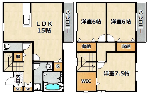 | 間取り詳細 | LDK 15畳 、 洋室 6畳 、 洋室 6畳 、 洋室 7.5畳 |