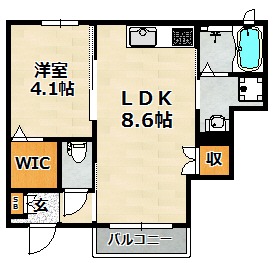 | 間取り詳細 | 洋室 4.1畳 、 LDK 8.6畳 |