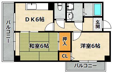 | 間取り詳細 | 洋室 6畳 、 和室 6畳 、 DK 6畳 |