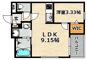 | 間取り詳細 | 洋室 3.33畳 、 LDK 9.15畳 |