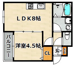 | 間取り詳細 | LDK 8畳 、 洋室 4.5畳 |