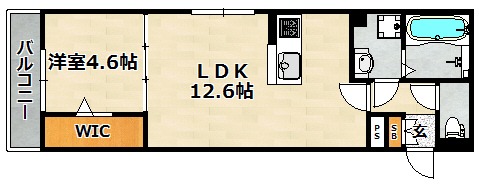 | 間取り詳細 | 洋室 4.6畳 、 LDK 12.6畳 |