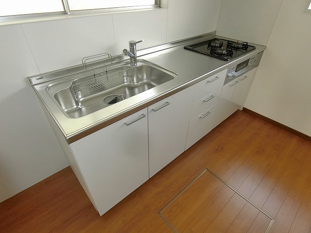 | 設備 | ガス(都市ガス)、インターホン(TVモニター付き)、日当り良好、通風良好、フローリング、専用庭、収納スペース、クローゼット、クローゼット数(1)、バス・トイレ別(別室)、シャワー、脱衣所、給湯、3点給湯、温水洗浄便座、ウォームレット、洗面台、洗面所独立、洗濯機置き場(室内)、コンロ設置済、コンロ口数(3)、コンロ種類(都市ガス)、グリル、システムキッチン | ||
