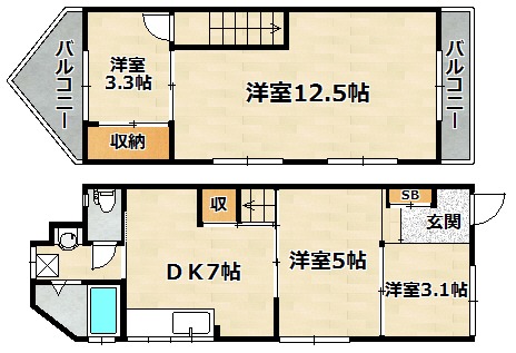 | 間取り詳細 | 洋室 12.5畳 、 洋室 5畳 、 洋室 3.3畳 、 洋室 3.1畳 |