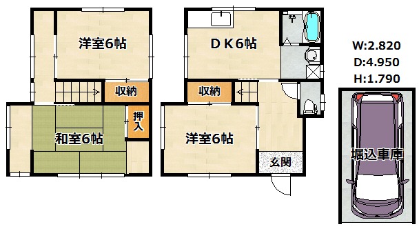 | 間取り詳細 | 和室 6畳 、 洋室 6畳 、 洋室 6畳 、 DK 6畳 |