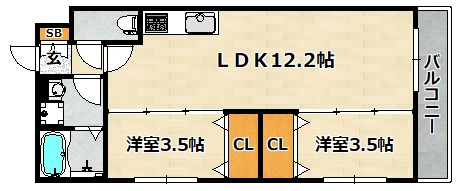 | 間取り詳細 | 洋室 3.5畳 、 洋室 3.5畳 、 LDK 12.2畳 |