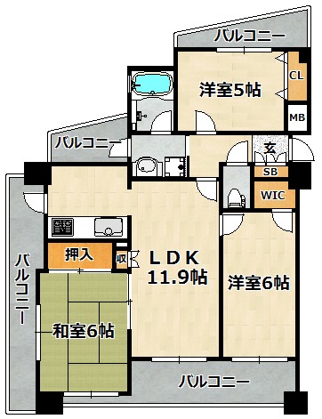 | 間取り詳細 | 洋室 6畳 、 和室 6畳 、 洋室 6畳 、 LDK 12畳 |