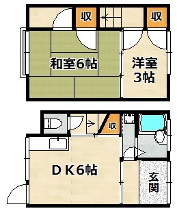 | 間取り詳細 | 洋室 3畳 、 和室 6畳 、 DK 6畳 |