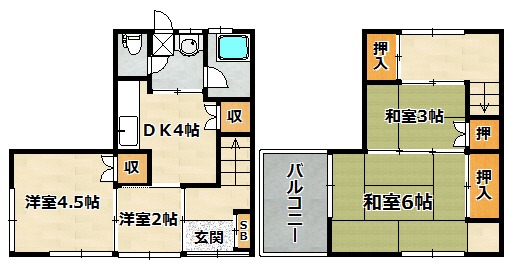 洋室 4.5畳 和室 3畳 和室 6畳 DK 4畳 |