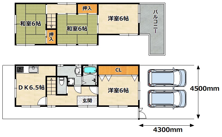 | 間取り詳細 | 洋室 6畳 、 洋室 6畳 、 和室 6畳 、 和室 6畳 、 DK 6.5畳 |