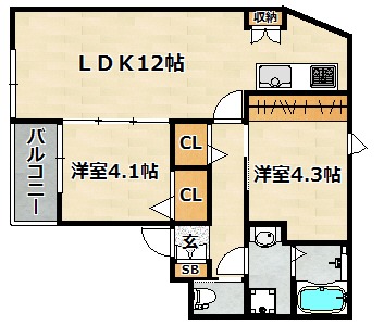 | 間取り詳細 | 洋室 4.1畳 、 洋室 4.3畳 、 LDK 12畳 |