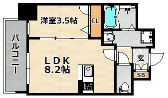 | 間取り詳細 | 洋室 3.5畳 、 LDK 8.2畳 |