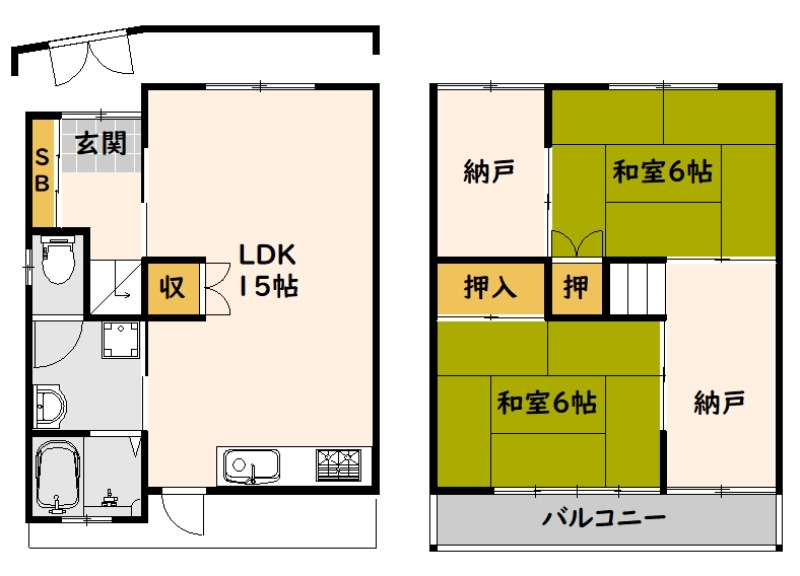 | 間取り詳細 | 和室 6畳 、 和室 6畳 、 LDK 15畳 |