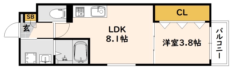 | 間取り詳細 | 洋室 3.8畳 、 LDK 8.1畳 |