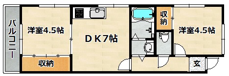 | 間取り詳細 | 洋室 4.5畳 、 洋室 4.5畳 、 DK 7畳 |
