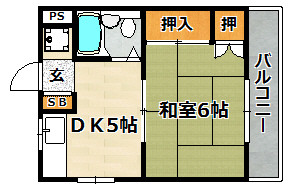 | 間取り詳細 | 和室 6畳 、 DK 5畳 |