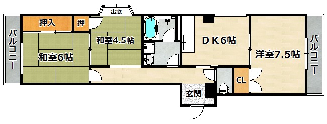 | 間取り詳細 | 和室 4.5畳 、 和室 6畳 、 DK 6畳 、 洋室 7.5畳 |