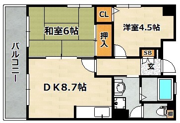 | 間取り詳細 | LDK 8.7畳 、 洋室 4.5畳 、 和室 6畳 |
