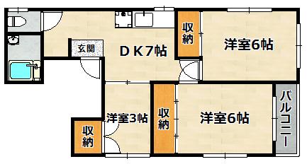 | 間取り詳細 | 洋室 6畳 、 洋室 6畳 、 洋室 3畳 、 DK 7畳 |