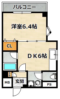 | 間取り詳細 | DK 6畳 、 洋室 6.4畳 |