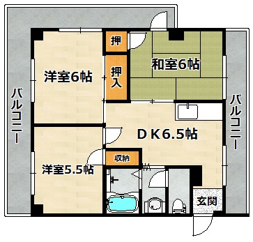 洋室 6畳 和室 6畳 DK 6.5畳 |