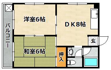間取り詳細 | 洋室 6畳 、 和室 6畳 、 DK 8畳 |