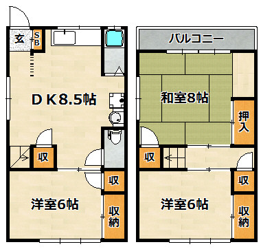 洋室 6畳 和室 8畳 DK 8.5畳 |