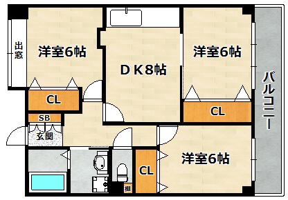 | 間取り詳細 | 洋室 6畳 、 洋室 6畳 、 洋室 6畳 、 DK 8畳 |