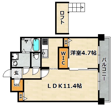 | 間取り詳細 | 洋室 4.7畳 、 LDK 11.4畳 |