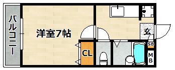 | 間取り詳細 | K 2畳 、 洋室 7畳 |