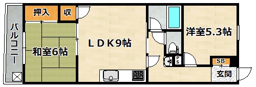 | 間取り詳細 | 洋室 5.3畳 、 和室 6畳 、 LDK 9畳 |