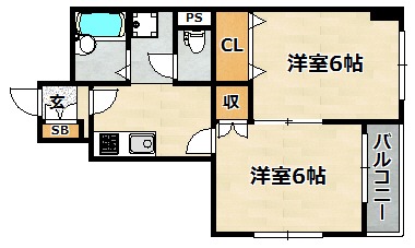 | 間取り詳細 | 洋室 6畳 、 和室 6畳 、 K 3畳 |