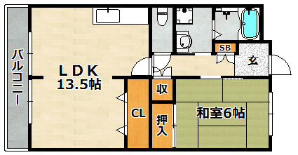 | 間取り詳細 | LDK 13.5畳 、 和室 6畳 |