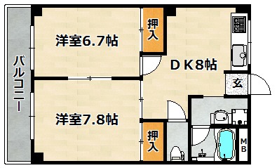 | 間取り詳細 | LDK 8畳 、 洋室 6.7畳 、 洋室 7.8畳 |