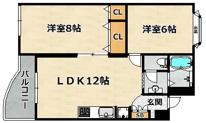 | 間取り詳細 | 洋室 6畳 、 洋室 8畳 、 LDK 12畳 |