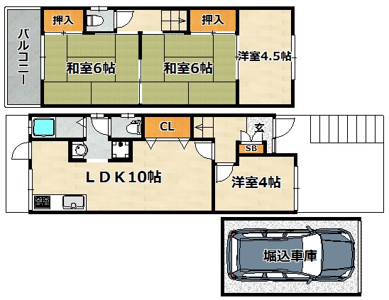 | 間取り詳細 | 洋室 4畳 、 洋室 4.5畳 、 和室 6畳 、 和室 6畳 、 LDK 10畳 |